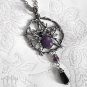 Purple Crystal Gunmetal Pendant Necklace Dark Gothic Black Victorian Filigree D28